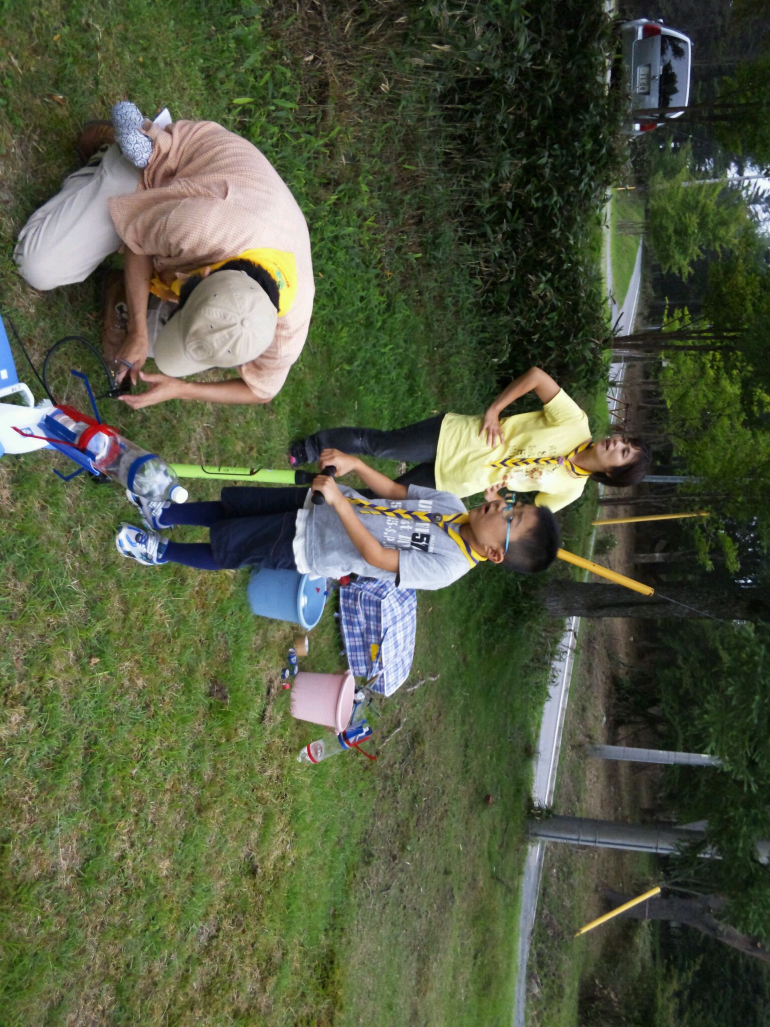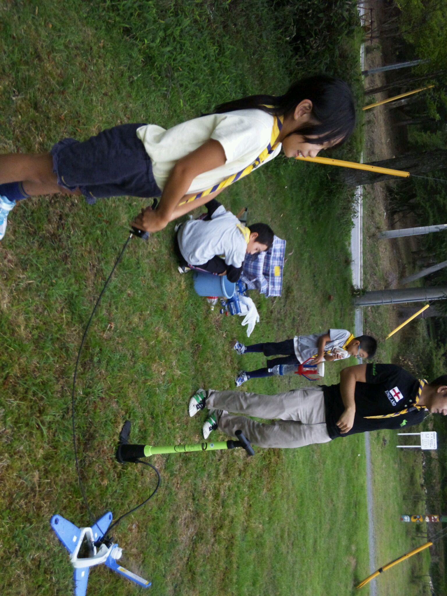 組長が作ったペットボトルロケットが一番飛びました!