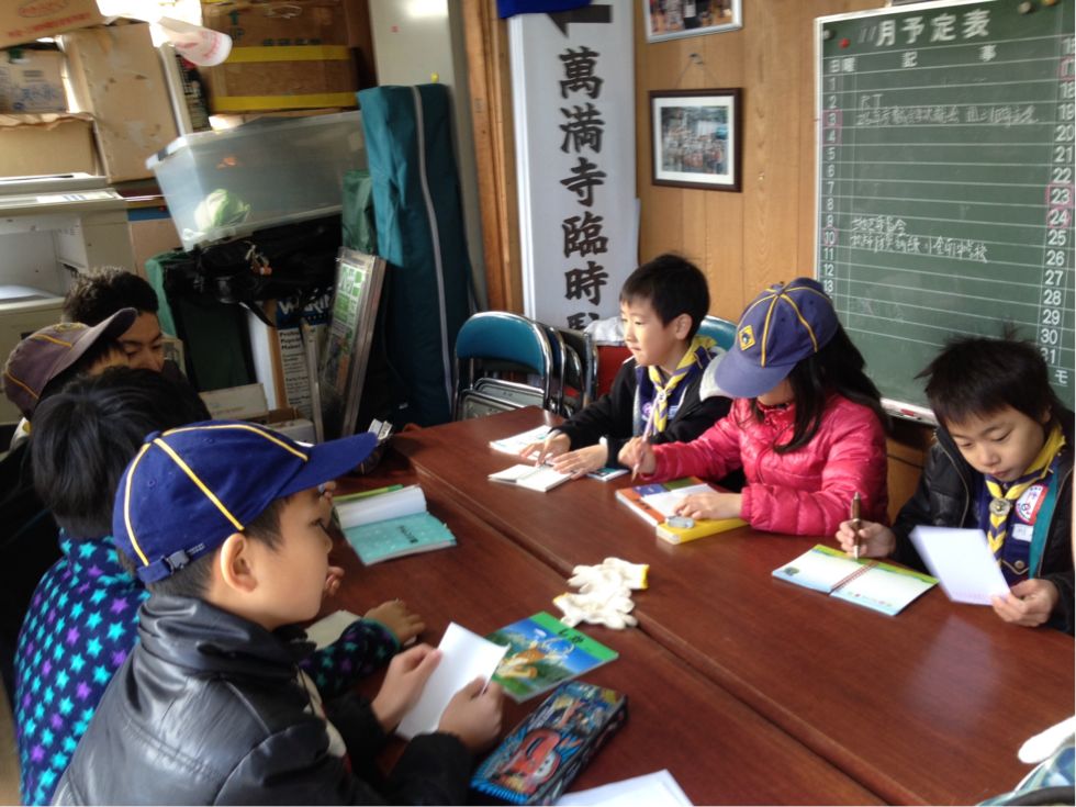 カブ隊の島根です♪今日はクリスマス集会に向けて、スタンツ決めですね。まずは、発表用の制作仕上げ〜♪