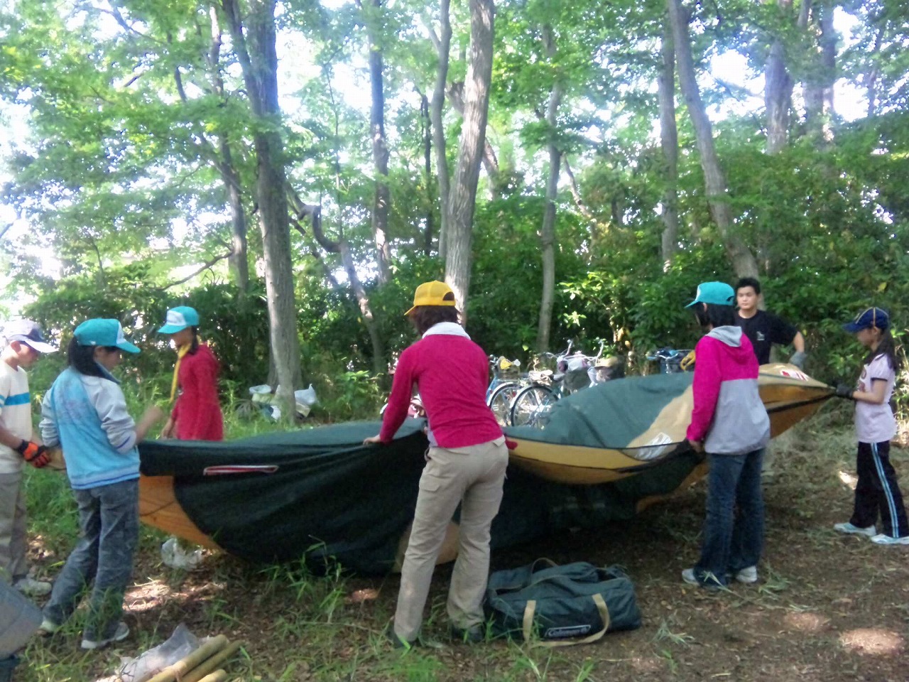 一緒にロープ練習やテントたての練習を頑張りました。
