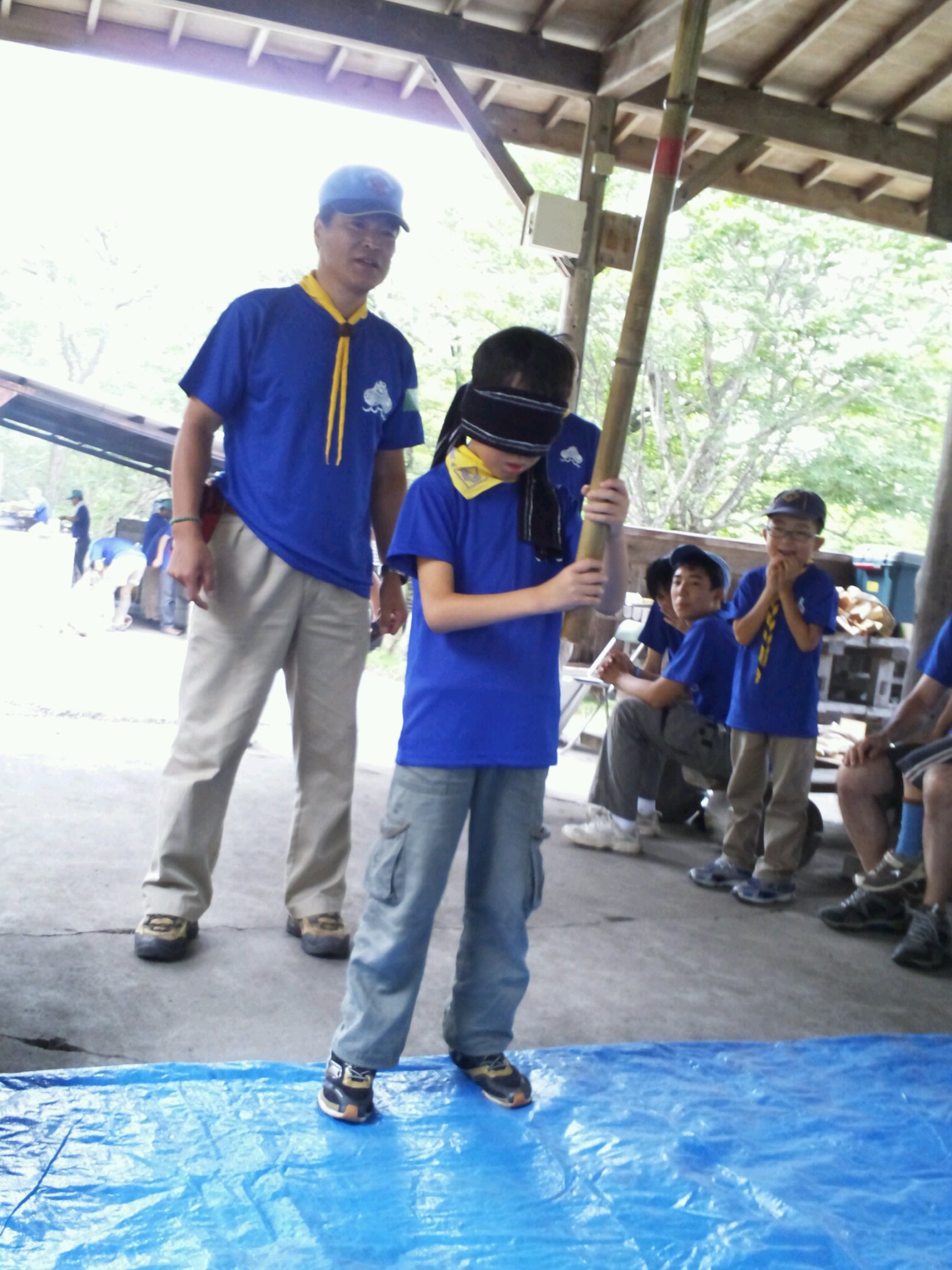 スイカ割りの次はボーイ隊が作ったターザンロープで